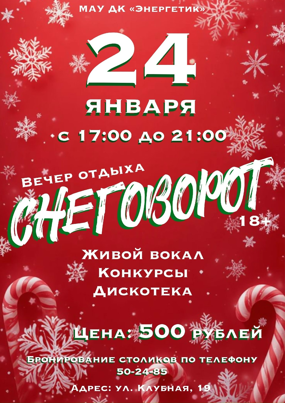 Ждём вас 24 января в ДК «Энергетик»!